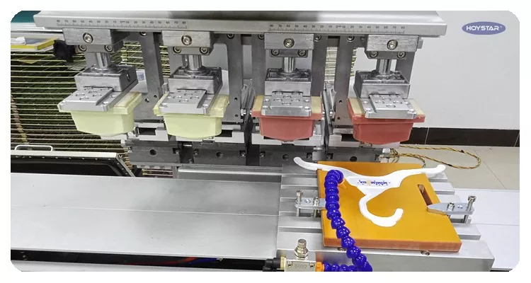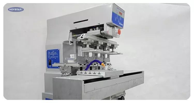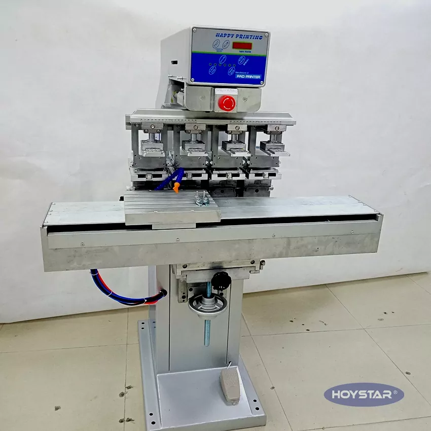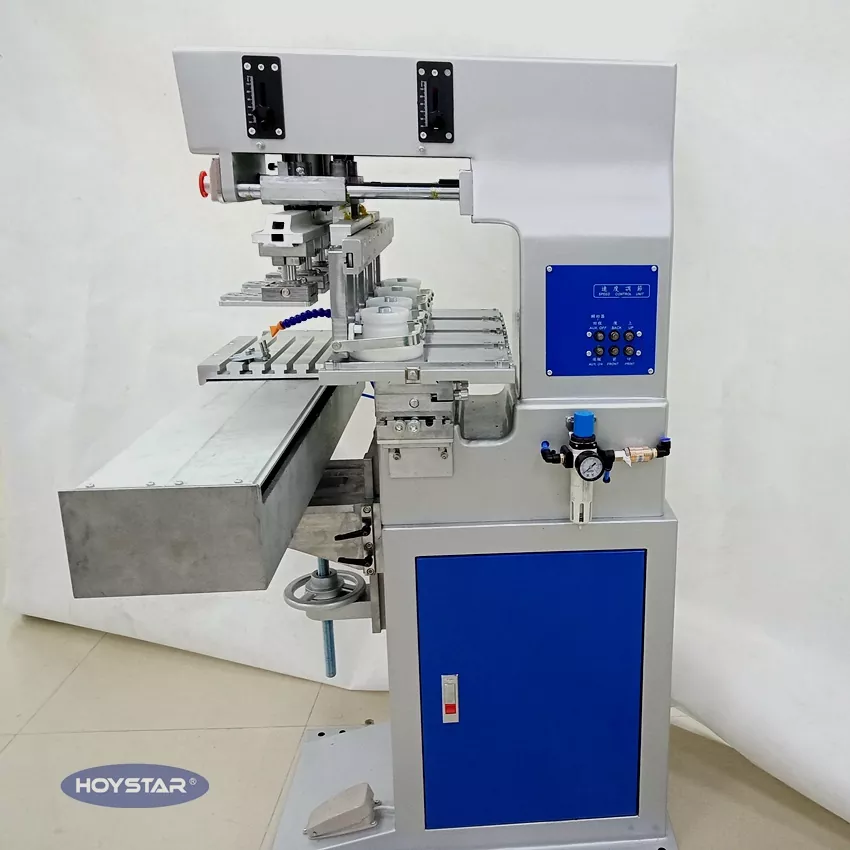 Kínai professzionális gyártóként szeretnénk Önnek nagy hatékonyságú HOYSTAR 4 színes tamponnyomtatót szállítani munkaasztallal. Gépeink PLC és érintőképernyős vezérlést használnak, és különféle termékek nyomtatására alkalmasak. A gép versenyképes áron, kis helyigénnyel és stabil nyomtatási minőséggel rendelkezik.