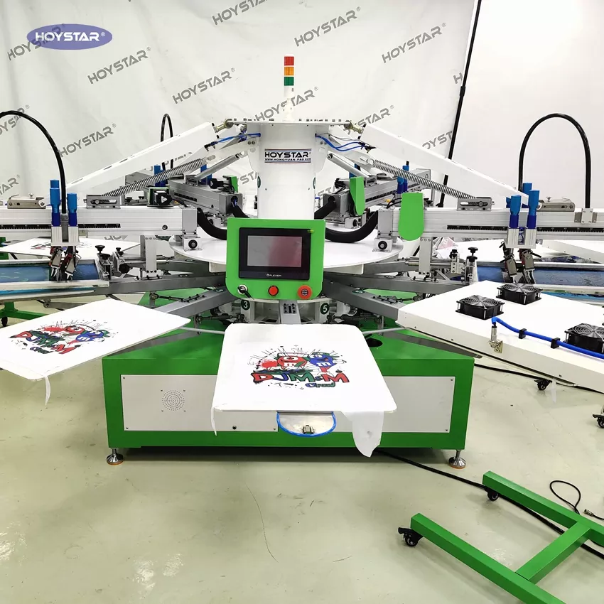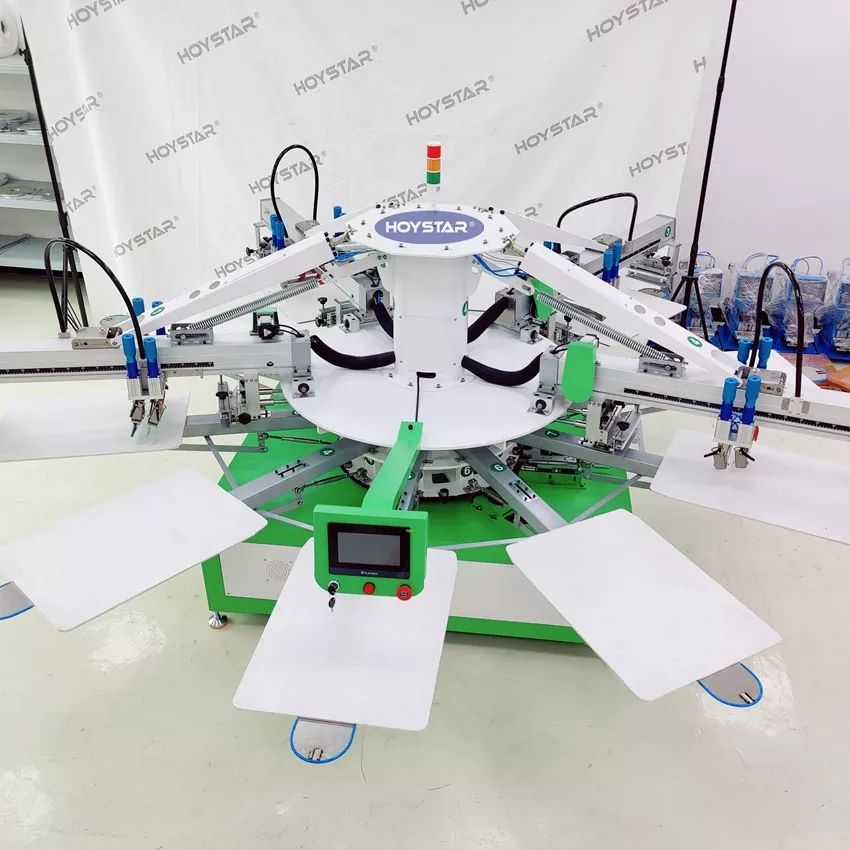 Ez a HOYSTAR 4 színes póló textilnyomtató szitanyomógép kifejezetten a nyomdaipar számára készült. Intelligens mikroprocesszorral, érintőképernyővel és motoros rendszerrel felszerelve magas nyomtatási stabilitást és ±0,1 mm-es színregisztrációs toleranciát biztosít, jelentősen javítva a nyomtatási pontosságot és konzisztenciát. Alkalmas különféle nyomtatási alkalmazásokhoz, például pólókhoz, ruhákhoz, címkékhez és szövetekhez. Ez az automatikus szitanyomtató ideális megoldást jelent a nagy pontosságú és hatékony nyomtatáshoz.