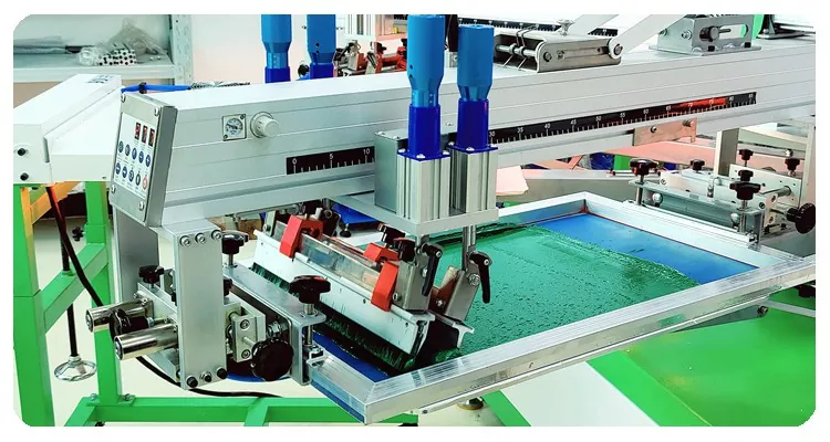 Kínai professzionális gyártóként szeretnénk Önnek nagy hatékonyságú 4 színű póló textilnyomtató szitanyomó gépet kínálni. Ez az intelligens mikroprocesszorral, érintőképernyővel és motoros rendszerrel felszerelt gép magas nyomtatási stabilitást és ±0,1 mm-es színregisztrációs toleranciát biztosít. A gép minden karosszériáját precízen tesztelik beszerelés előtt, minimális karbantartást és felhasználóbarát működést garantálva. Megbízhatósága és pontossága miatt népszerű, ez az automatikus szitanyomtató ideális választás a nyomdaipar számára.