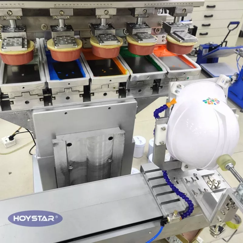 Kínai professzionális gyártóként szeretnénk Önnek nagy hatékonyságú HOYSTAR 6 Color védősisak tamponnyomtató gépet kínálni, amelyet kifejezetten védősisakra való nyomtatáshoz terveztek. Úgy tervezték, hogy egyetlen gyártási ciklusban 6 színes nyomtatást végezzen, nincs szükség ismételt beállításra, és jelentősen csökkenti a gyártási időt. A védősisakokon túl rugalmas kialakítása lehetővé teszi a zökkenőmentes nyomtatást számos hasonló alakú termékre, például védősisakokra, műanyag szerszámtokokra és apró, kemény héjú tartozékokra.