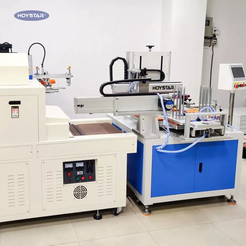 Professzionális gyártóként és beszállítóként a HOYSTAR automata szitanyomógépet szállít vonalzókhoz, nagy sebességű forgó munkaasztallal, PLC érintőképernyős vezérlőkkel, automatikus be- és kirakodó rendszerrel, rendszerrel, amely alkalmas különféle vonalzókra történő nyomtatásra.