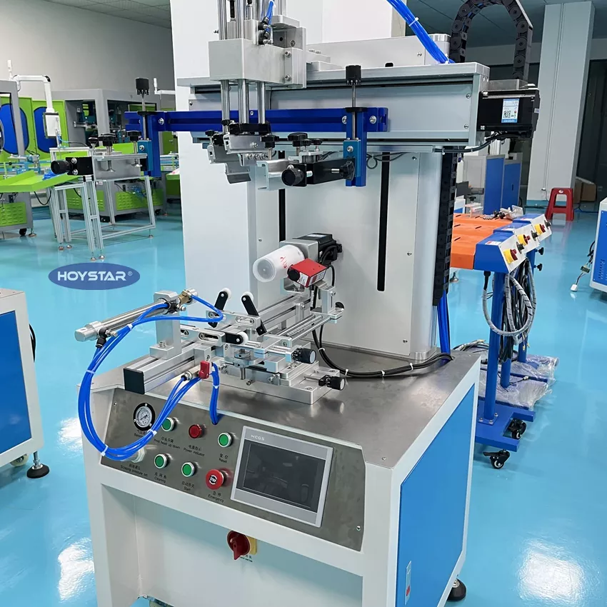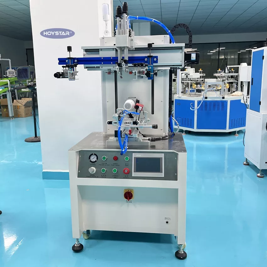 Professzionális gyártóként és szállítóként ezt a HOYSTAR CNC palackkupa hengeres szitanyomógépet kifejezetten kiváló minőségű nyomtatásra tervezték különféle kerek alakú termékekre, például palackokra, műanyag csövekre, csészékre stb. Nagy sebességű gyártást biztosít, miközben jó nyomtatási minőséget és alacsony zajszintet biztosít. Színregisztrációs szemmel van felszerelve, több színt nyomtathat a termékre. Alkalmas olyan iparágakban, mint a kozmetika, a konténergyártás, az élelmiszer-csomagolás és más, ívelt felületű termékekkel foglalkozó ágazatok.