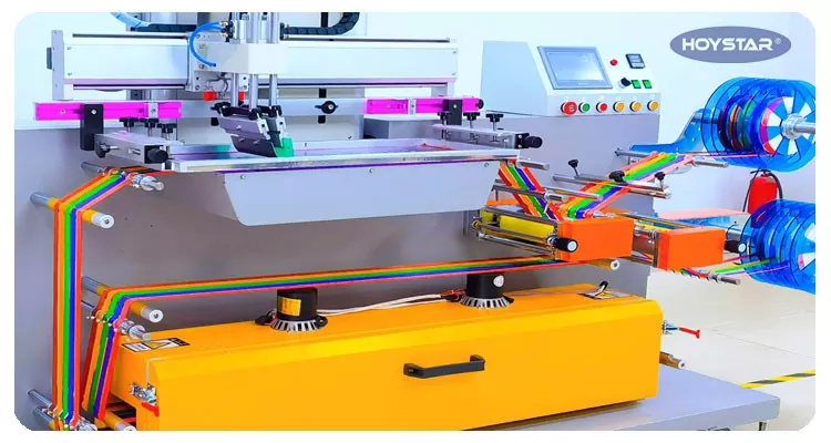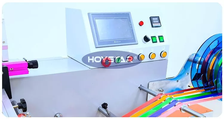Ez a HOYSTAR filmtekercses szitanyomógépet szállít. Fotoelektromos regisztrációval, PLC érintőképernyős vezérléssel, testreszabható beállításokkal felszerelt gép, alkalmas különféle filmekre, szalagokra stb.