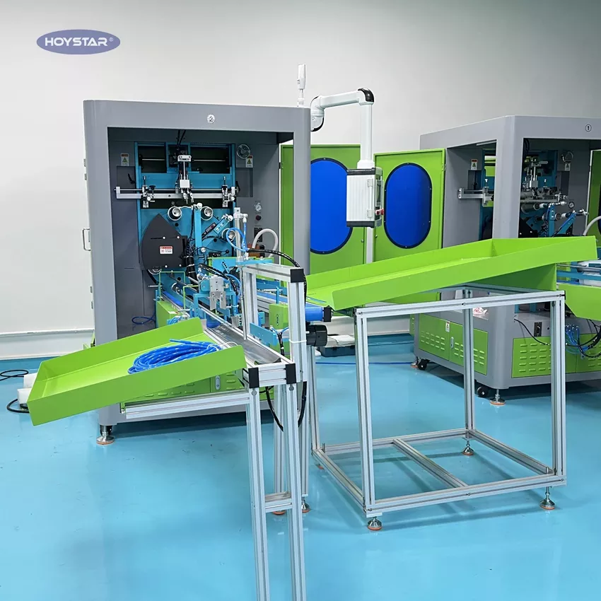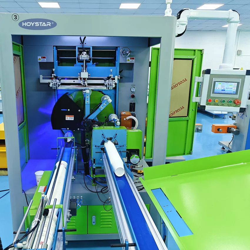 Kínai professzionális gyártóként szeretnénk Önnek nagy hatékonyságú HOYSTAR teljesen automatikus többszínű műanyag poharak szitanyomógépet, nagy hatékonyságú szitanyomtatási megoldást kínálni, amely speciális forgatókönyvekre van szabva – speciális, teljesen automatikus csészékhez készült szitanyomógépünket. Ezt a gépet csészékre való nyomtatásra tervezték, és teljes, teljesen automatikus munkafolyamattal rendelkezik: automatikus betöltés, automatikus nyomtatás, automatikus kirakodás és LED UV-szárítás. Nagymértékben csökkenti a munkaerőköltségeket és minimalizálja a nyomtatás során előforduló hibákat is, így stabil nyomtatási eredményeket biztosít a tömeggyártásban.