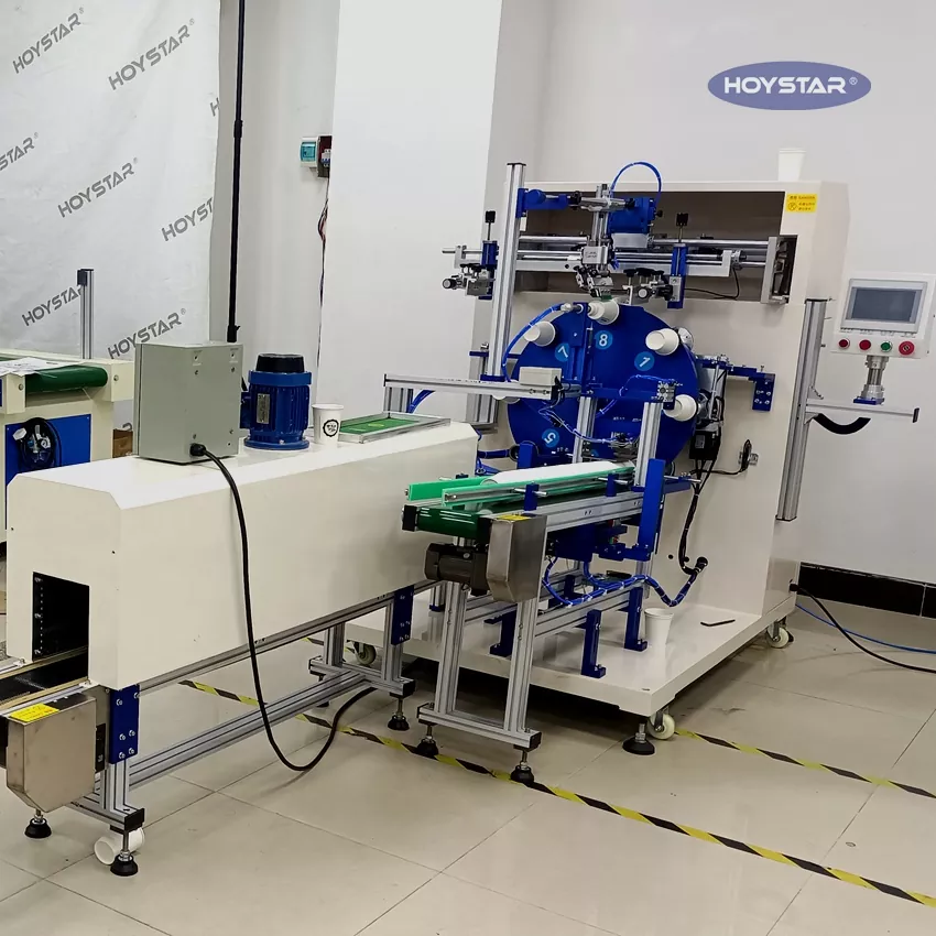 Kínai professzionális gyártóként szeretnénk Önnek nagy hatékonyságú HOYSTAR teljesen automatikus 1 színű hengeres szitanyomógépet kínálni PP/PET csészéhez, nagy hatékonyságú szitanyomó megoldást, amely speciális forgatókönyvekre van szabva – speciális, teljesen automatikus csészékhez készült szitanyomógépünket. Ezt a gépet csészékre való nyomtatásra tervezték, és teljesen automatikus munkafolyamattal rendelkezik: automatikus betöltés, automatikus nyomtatás, automatikus kirakodás és IR szárító rendszer. Nagymértékben csökkenti a munkaerőköltségeket és minimalizálja a nyomtatás során előforduló hibákat is, így stabil nyomtatási eredményeket biztosít a tömeggyártásban.