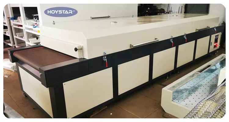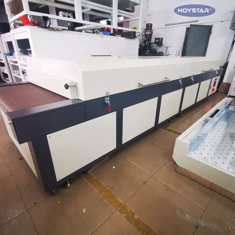 Kínai professzionális gyártóként szeretnénk Önnek biztosítani a nagy hatékonyságú HOYSTAR nagy infravörös szárítógépet szállítószalaggal. Alkalmas különféle termékek szárítására - például textíliák, zászlók, transzparensek, alumínium lapok, üveg, papír és műanyagok - olyan folyamatok után, mint a szitanyomás, festés, melegen kötő ragasztó alkalmazása, tintasugaras nyomtatás stb.