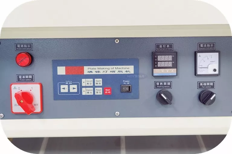 Az UV vákuum expozíciós gép szárítással szitanyomtatáshoz kezelőpanellel felszerelt, a gép expozíciós ideje és szárítási ideje szabadon állítható az igényeknek megfelelően